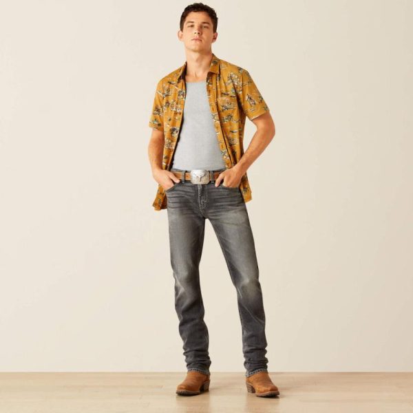 - Contemporary fit, cut narrow to the body in a shorter length that can be worn untucked