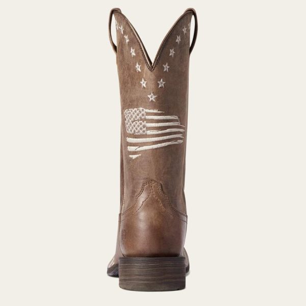 Show off your patriotic side in this beautiful, performance boot. With stars and stripes American flag embroidery and pretty bronze piping, it’s a one-of-a-kind style that still feels classically Western.