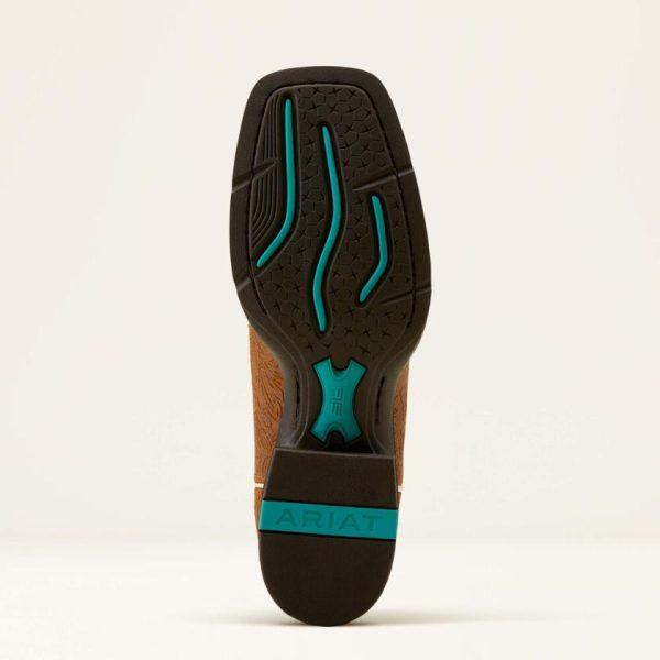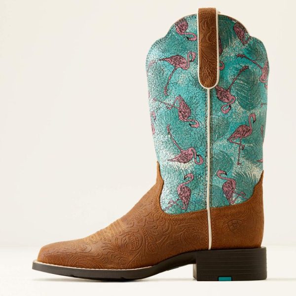 Ariat Cowgirl Boots | Round Up Wide Square Toe Western Boot Embossed Chestnut/flock O Flamingos – Women/Sale