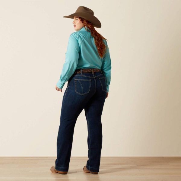 Your all-day, every-day jean. With a polished dark wash and flattering mid-rise, this trouser can perform in the arena or get dressed up for date night. Minimal back-pocket stitching goes with everything from snap shirts to graphic tees.