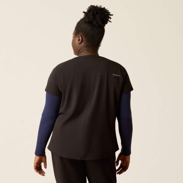 A Mandarin collar and cap sleeves make our Eliza Top a stylish alternative to a traditional scrub. Made from our Nua recycled stretch fabric, it’s engineered to keep you cool, comfortable, and fresh all workday.