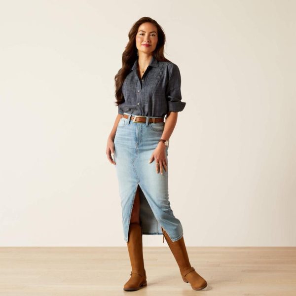 With its luxurious drape and pleated front details, the Oban Shirt is the denim shirt of your dreams. Easy to dress up or down, it’s versatile enough to wear with just about anything.