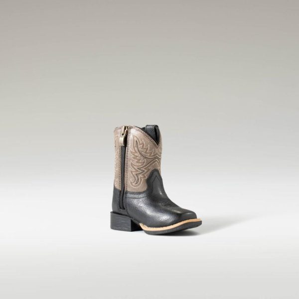 Iconic Ariat style, sized right for kids. Easy to slip on busy feet and made with the cushioning and traction they need for those early steps, this adorable bootie will stand out wherever your little rider goes.