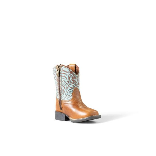 Iconic Ariat style, sized right for kids. Easy to slip on busy feet and made with the cushioning and traction they need for those early steps, this adorable bootie will stand out wherever your little rider goes.