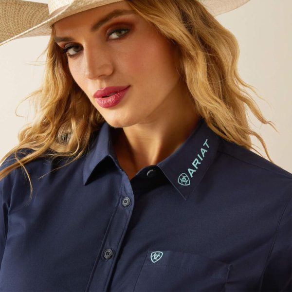Designed for active riders, this team-inspired button-front shirt features a flattering silhouette with premium stretch fabric that moves seamlessly with your body. Perfect for all-day wear, it offers exceptional comfort while maintaining a polished, wrinkle-resistant appearance.