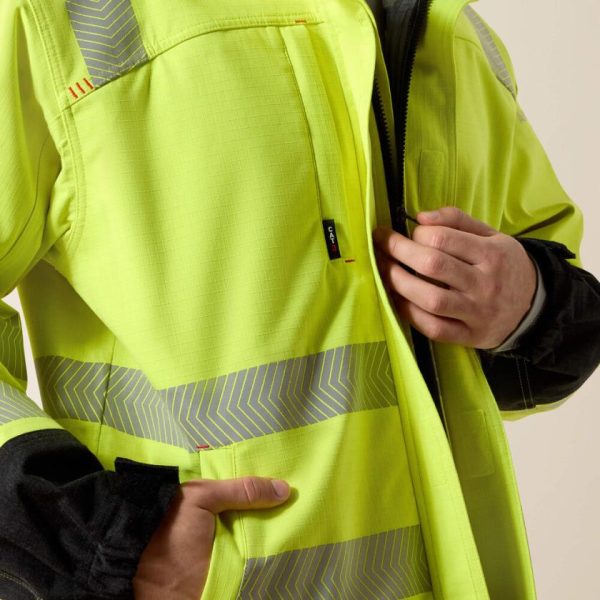 This jacket from our premium rainwear collection delivers the ultimate in rain protection. It’s made from triple-layer waterproof fabric and features a covered D-ring opening for use with a lanyard and harness. Pair with our FR Hi-Vis Waterproof Bib for even more protection.
